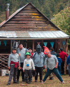 Al finalizar los tres tiempos se realizó un cierre de despedida, los niños y niñas pudieron jugar con los cascos que son parte del vestuario de los epew y se entregaron ejemplares de libro en cada lugar de mediación, el que cuenta también con una versión digital de libre descarga aquí. En el texto es posible encontrar los epew ilustrados, fichas con los nombres de las piezas didácticas y actividades pedagógicas para cada arte ancestral.