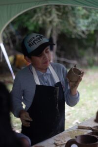 El segundo tiempo consistió en la exhibición, contacto y nutram en torno a las piezas didácticas para cada una de las artes ancestrales abordadas. En este caso contamos con cinco piezas cerámicas (metawe, meñkuwe, challa, mate y rali) de la wizufe y artista mapuche Yimara Praihuan del lof de Pucura (ragmapu), las piezas textiles (makun, ikilla, trariwe, trarilonko y kutama) de la destacada textilera Eliana Piniao de Purrahue, las joyas (kilkai, trapelacucha, sikill, tupu y akucha) y trabajos en madera (kollong, pichi kollong, rali, ruku y pifilka) del artista y rxtrafe Francisco Rivas de Chaurakawin.